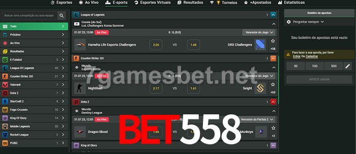 O Bet558 oferece uma grande seleção de opções de apostas em e-sports com probabilidades competitivas